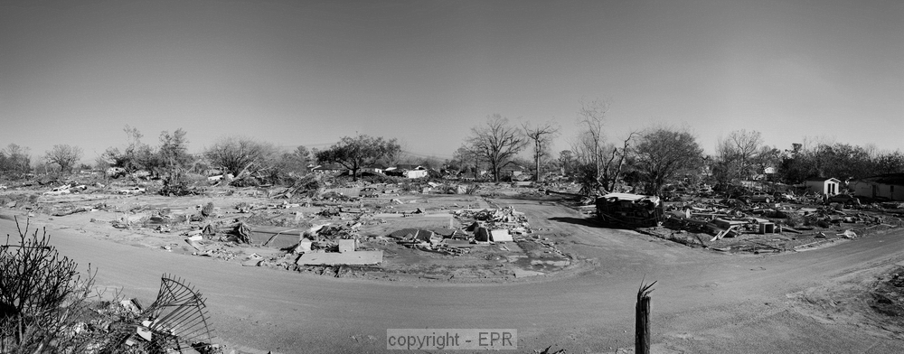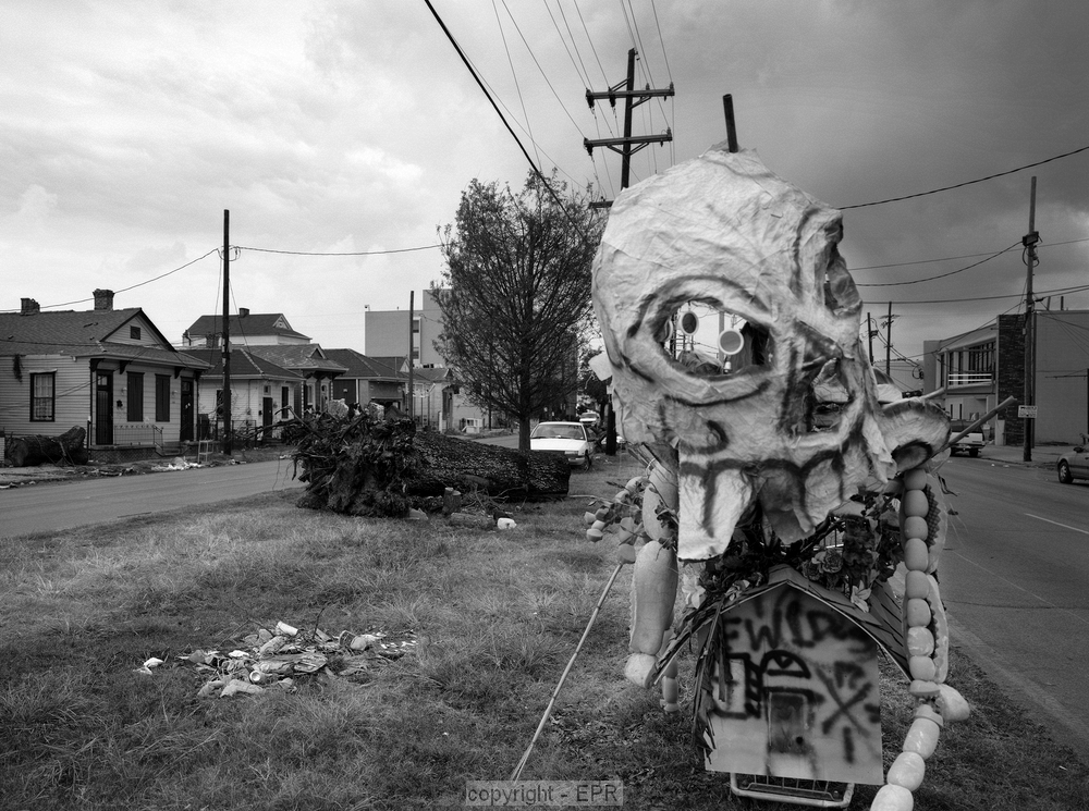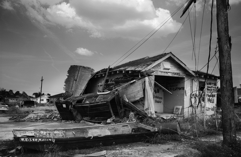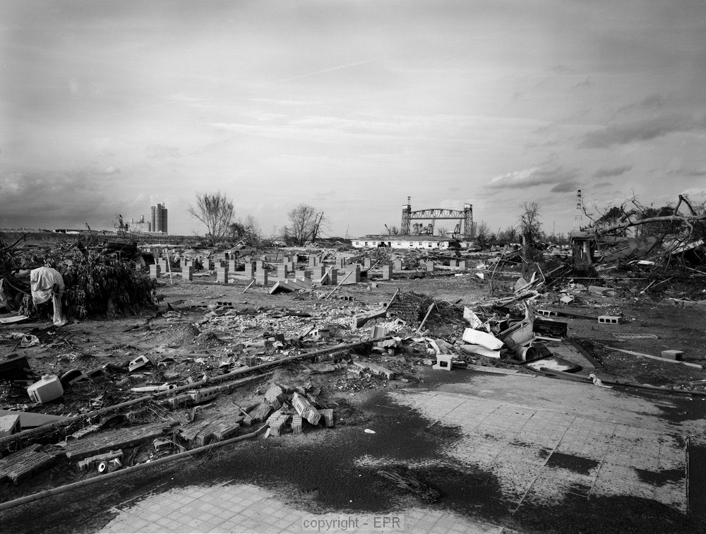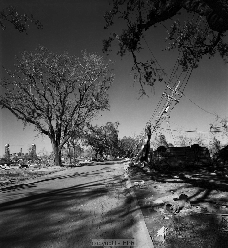 was protected from the flood by a barge that washed through the canal levee. This barge can be seen on many news photographs and videos of the flood. You can see the house I shot from just past the barge on the side opposite of the canal break.