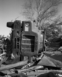 A Mack truck turned on its side among the Hurricane Katrina debris in the 9th Ward.